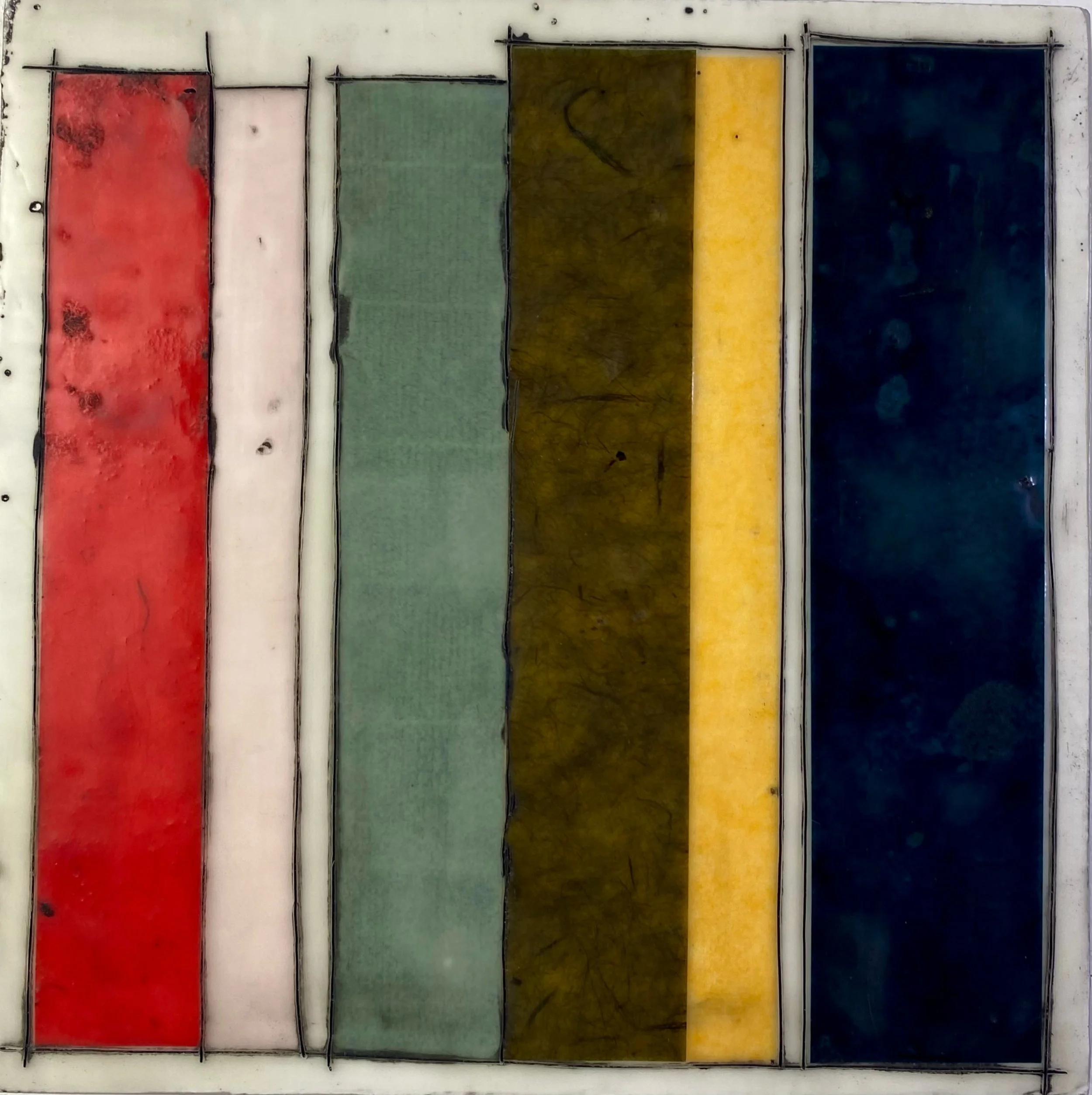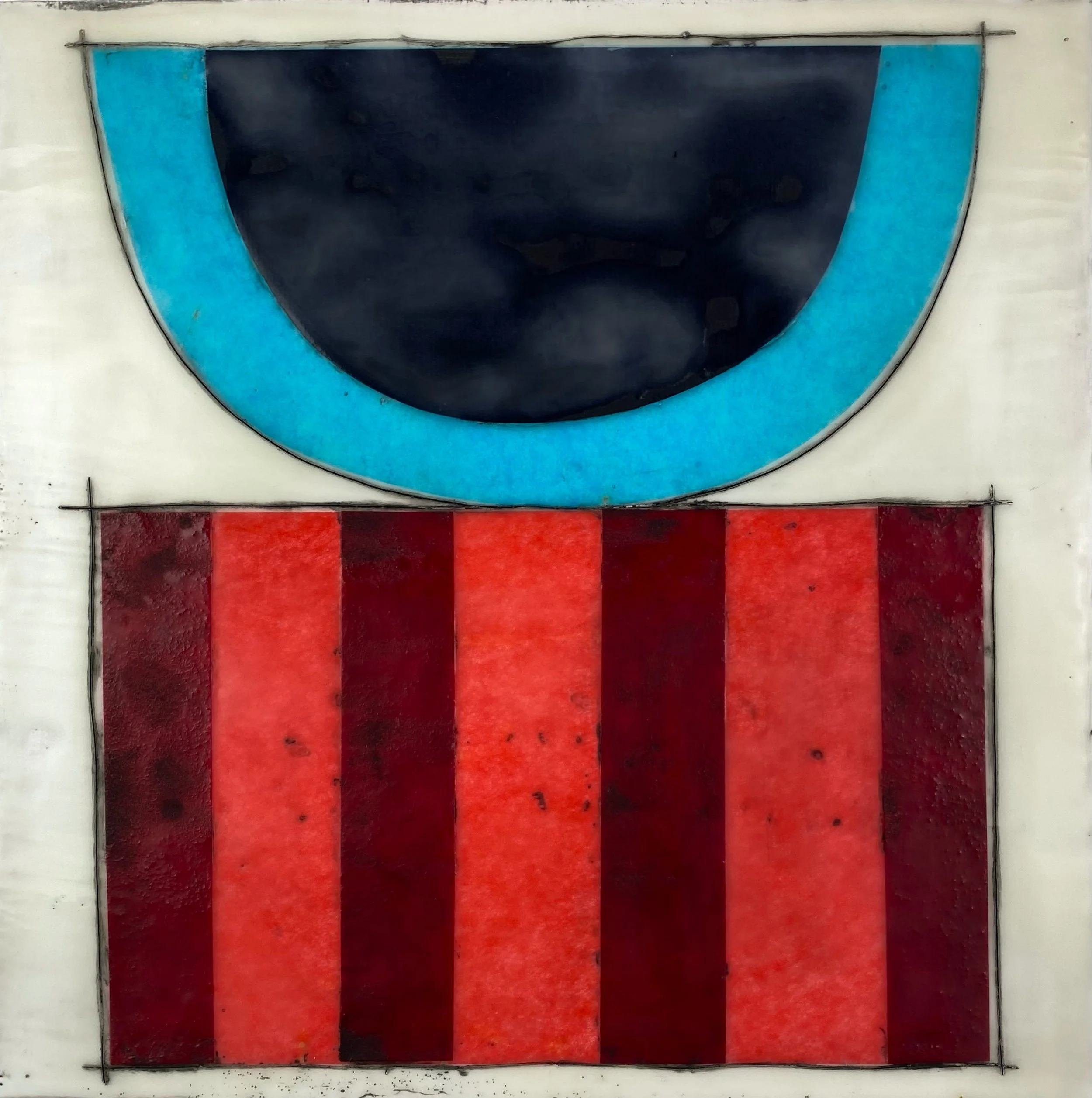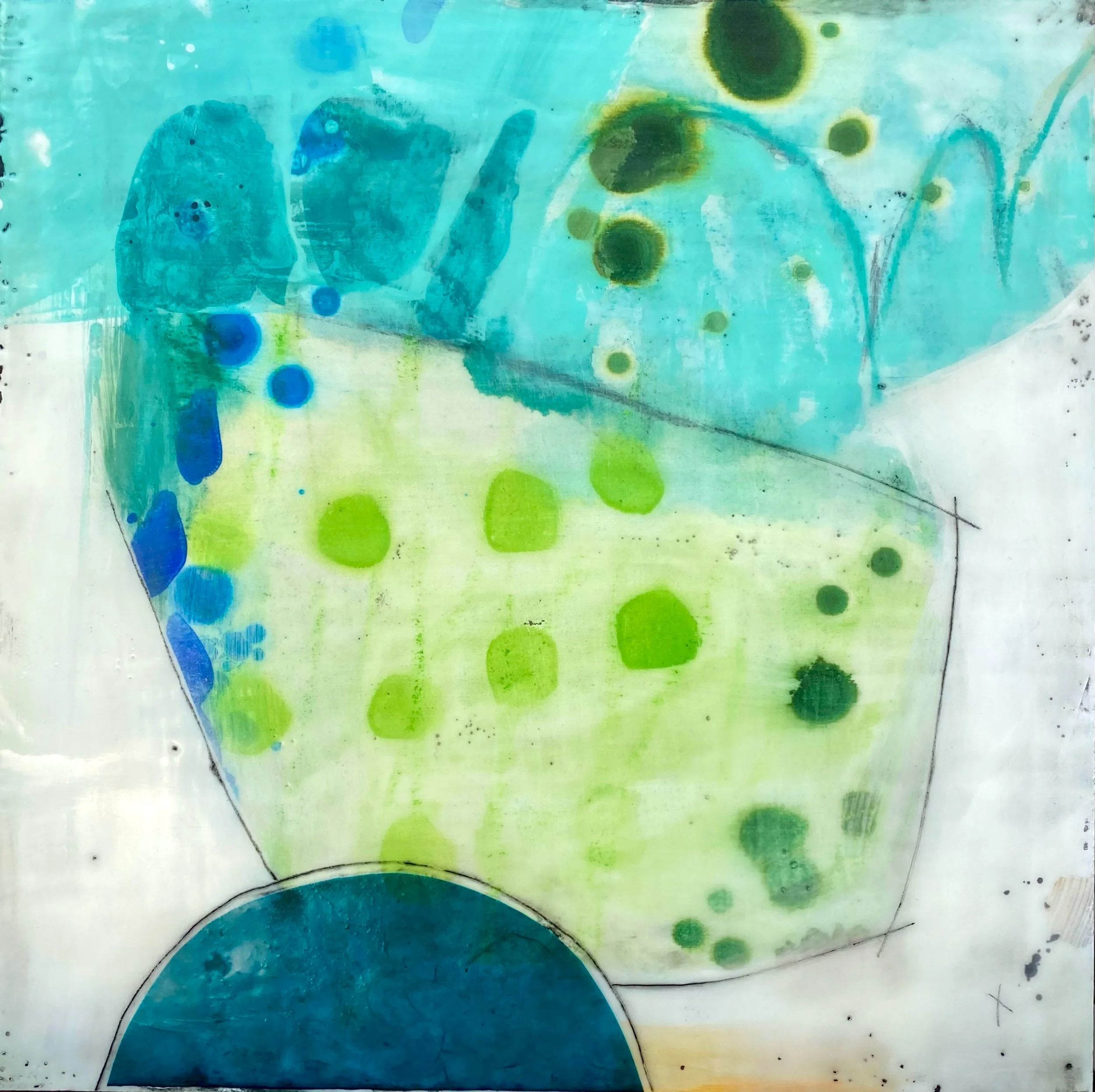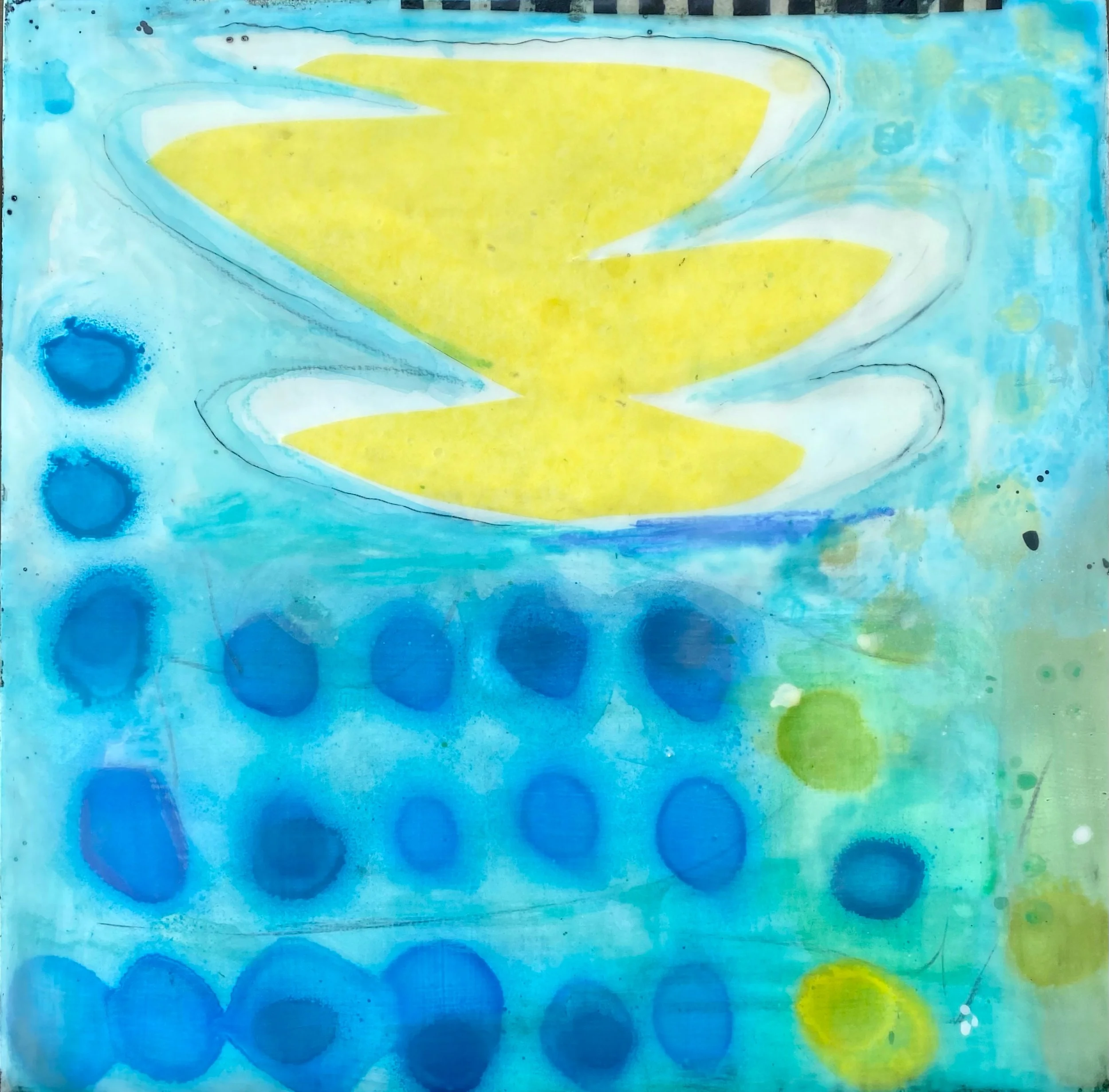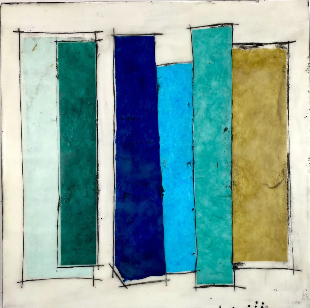 I am currently working in two separate and distinctive media, acrylic and encaustic. While both are paint, technically speaking, they behave very differently and my focus with each is different. With encaustic I primarily focus on collage; simple shapes, hard edges & lines, and color drive the process. My acrylic (mixed media) work often incorporates elements of collage as well, but in a much looser, more fluid and intuitive way. I find pleasure in each equally and I feel that for my art practice they are both essential as each seems to inform the other.