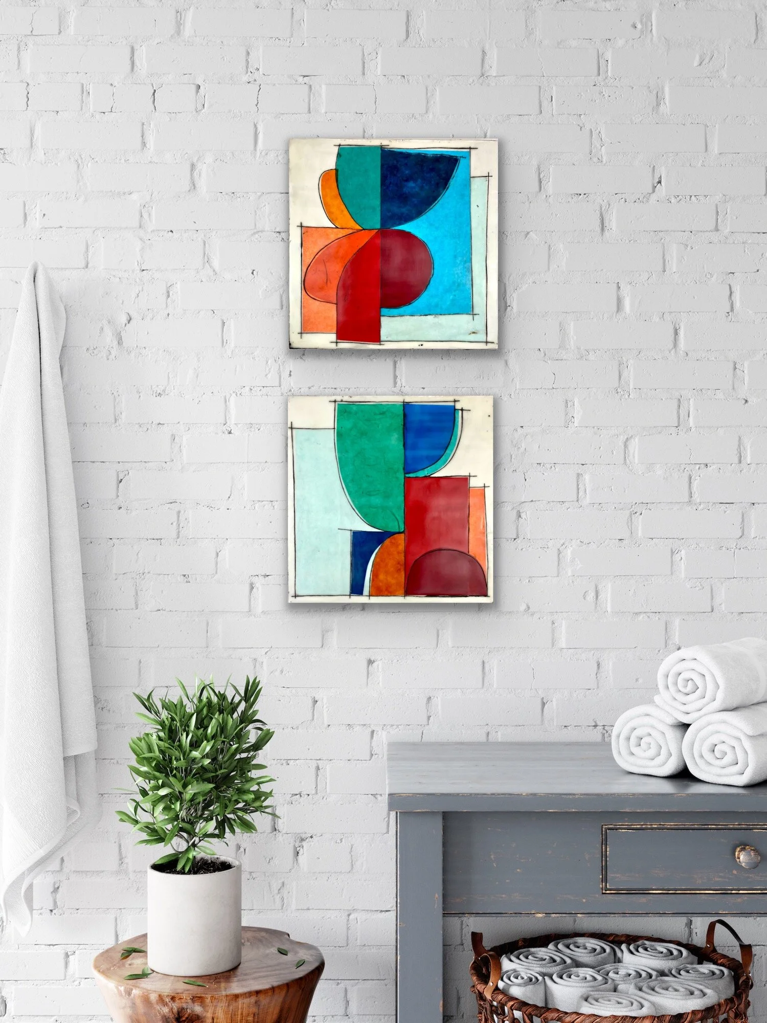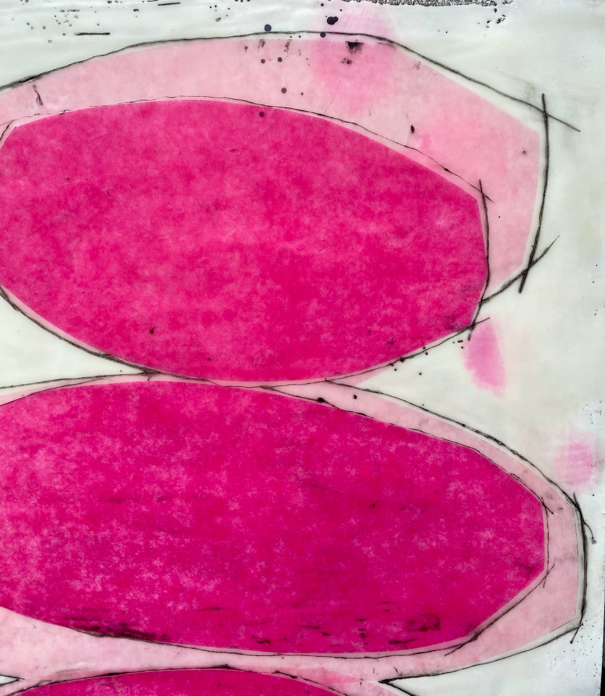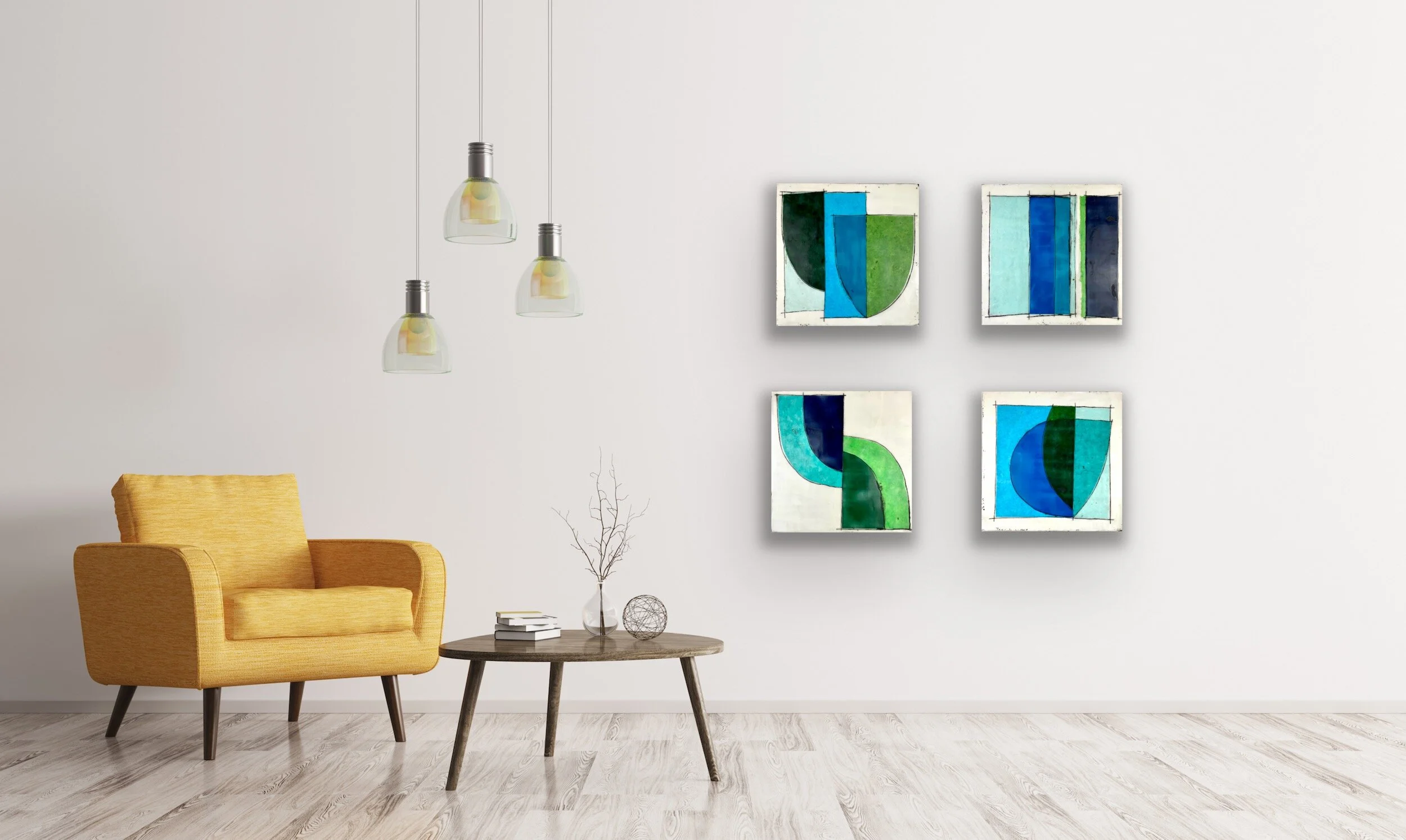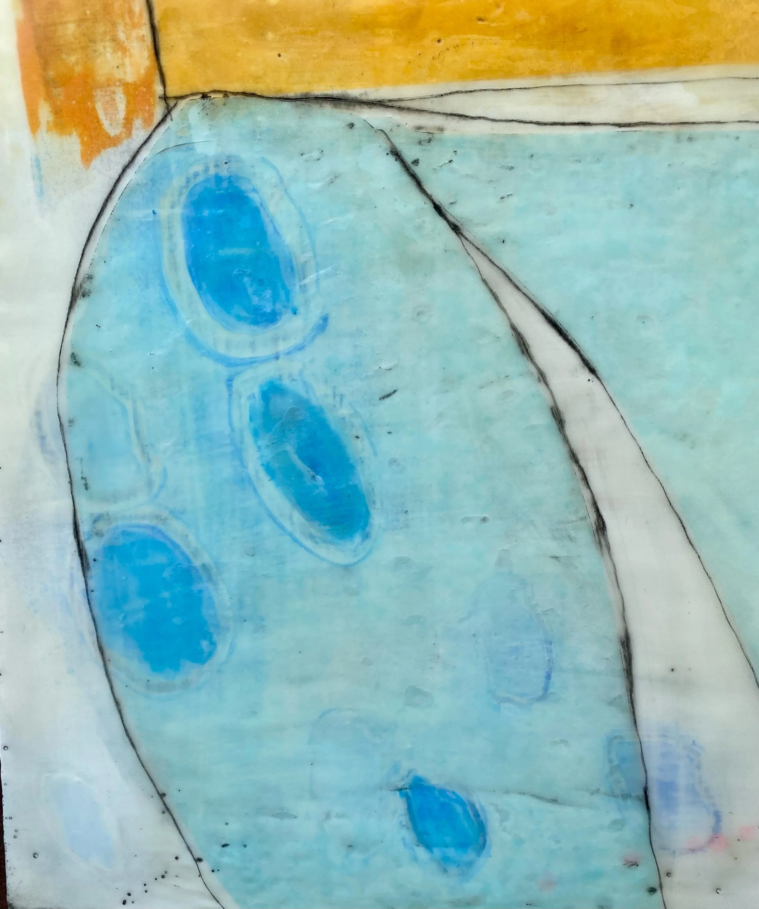 I am currently working in two separate and distinctive media, acrylic and encaustic. While both are paint, technically speaking, they behave very differently and my focus with each is different. With encaustic I primarily focus on collage; simple shapes, hard edges & lines, and color drive the process. My acrylic (mixed media) work often incorporates elements of collage as well, but in a much looser, more fluid and intuitive way. I find pleasure in each equally and I feel that for my art practice they are both essential as each seems to inform the other.