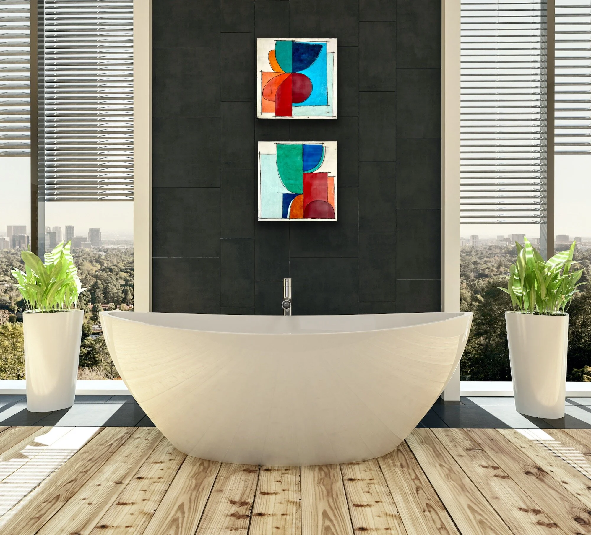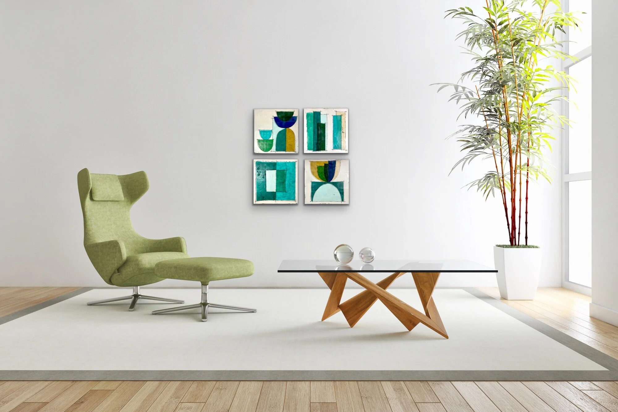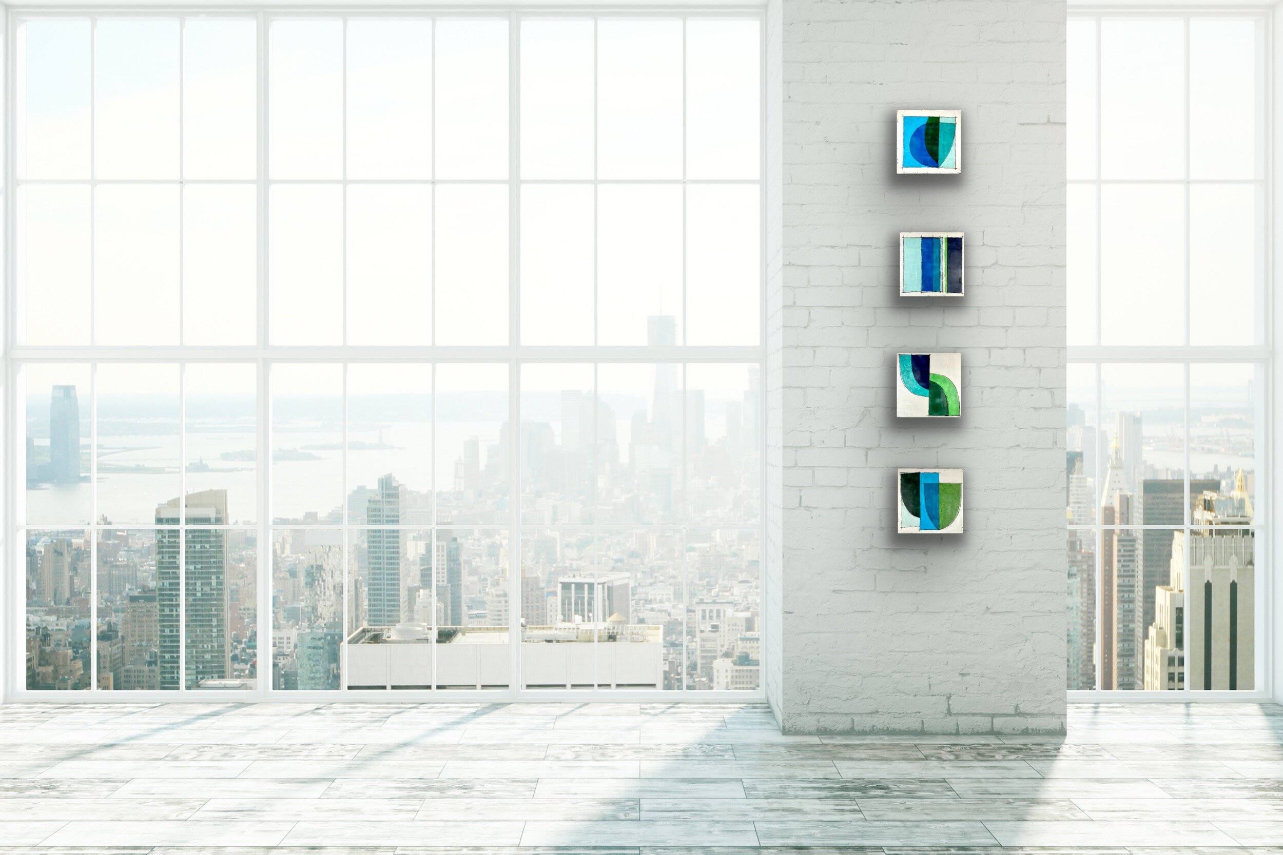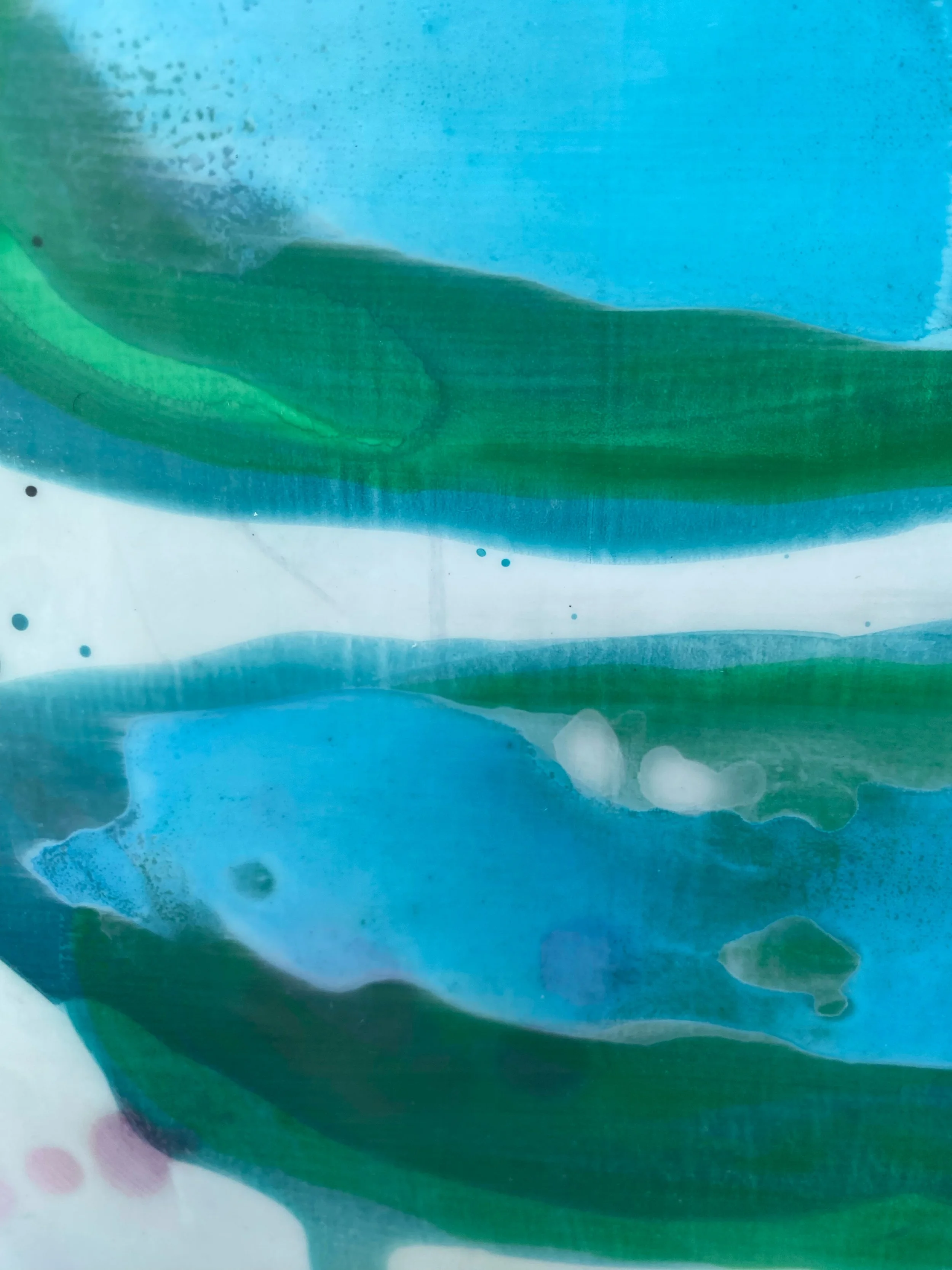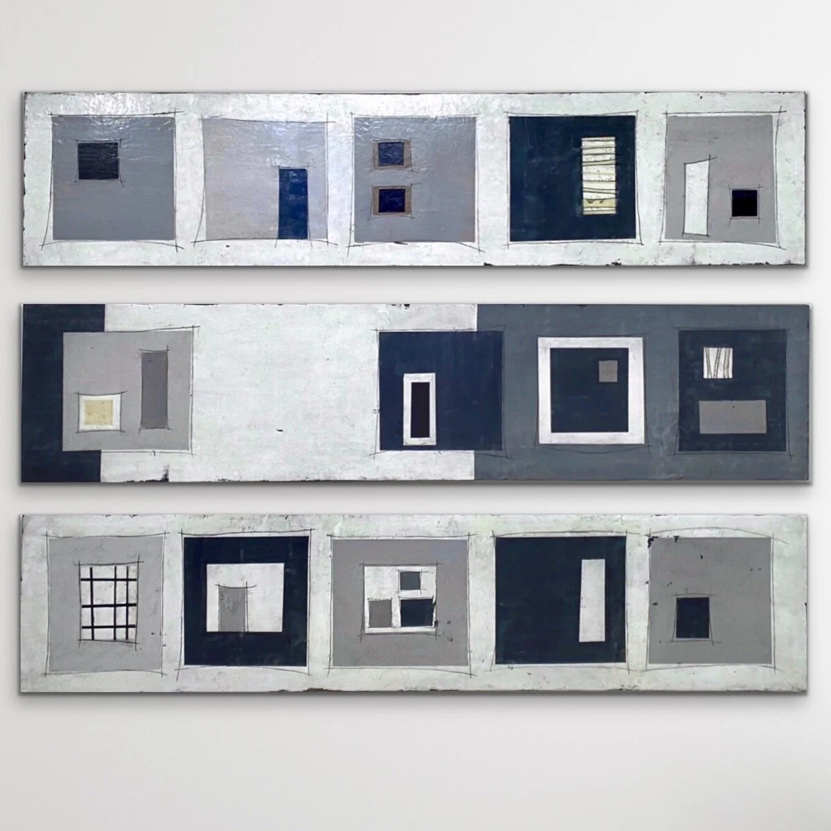 I am currently working in two separate and distinctive media, acrylic and encaustic. While both are paint, technically speaking, they behave very differently and my focus with each is different. With encaustic I primarily focus on collage; simple shapes, hard edges & lines, and color drive the process. My acrylic (mixed media) work often incorporates elements of collage as well, but in a much looser, more fluid and intuitive way. I find pleasure in each equally and I feel that for my art practice they are both essential as each seems to inform the other.