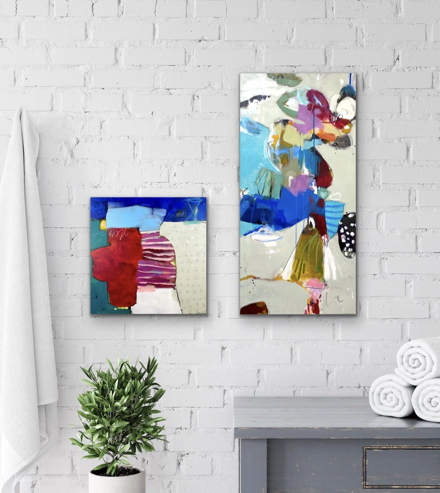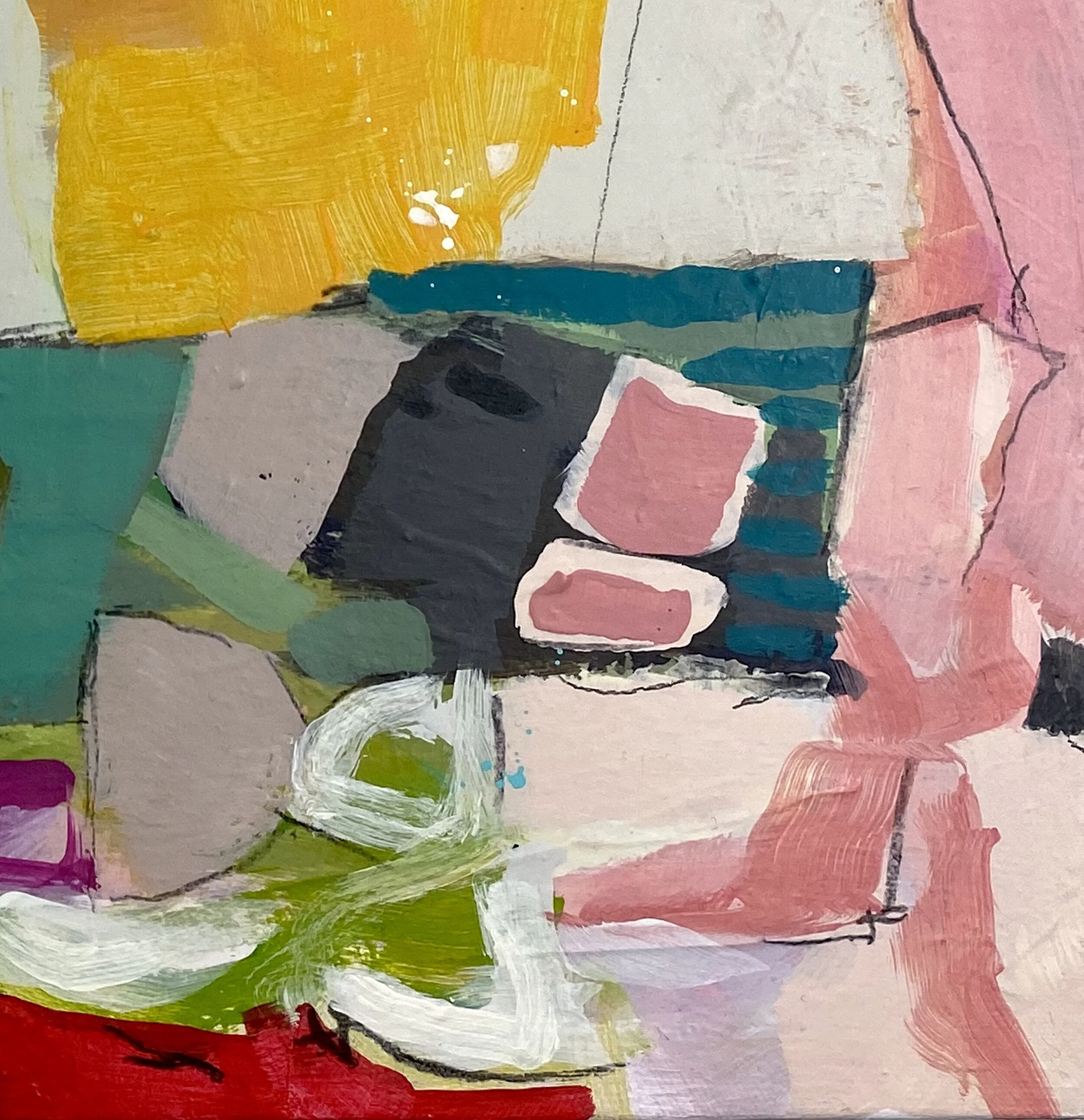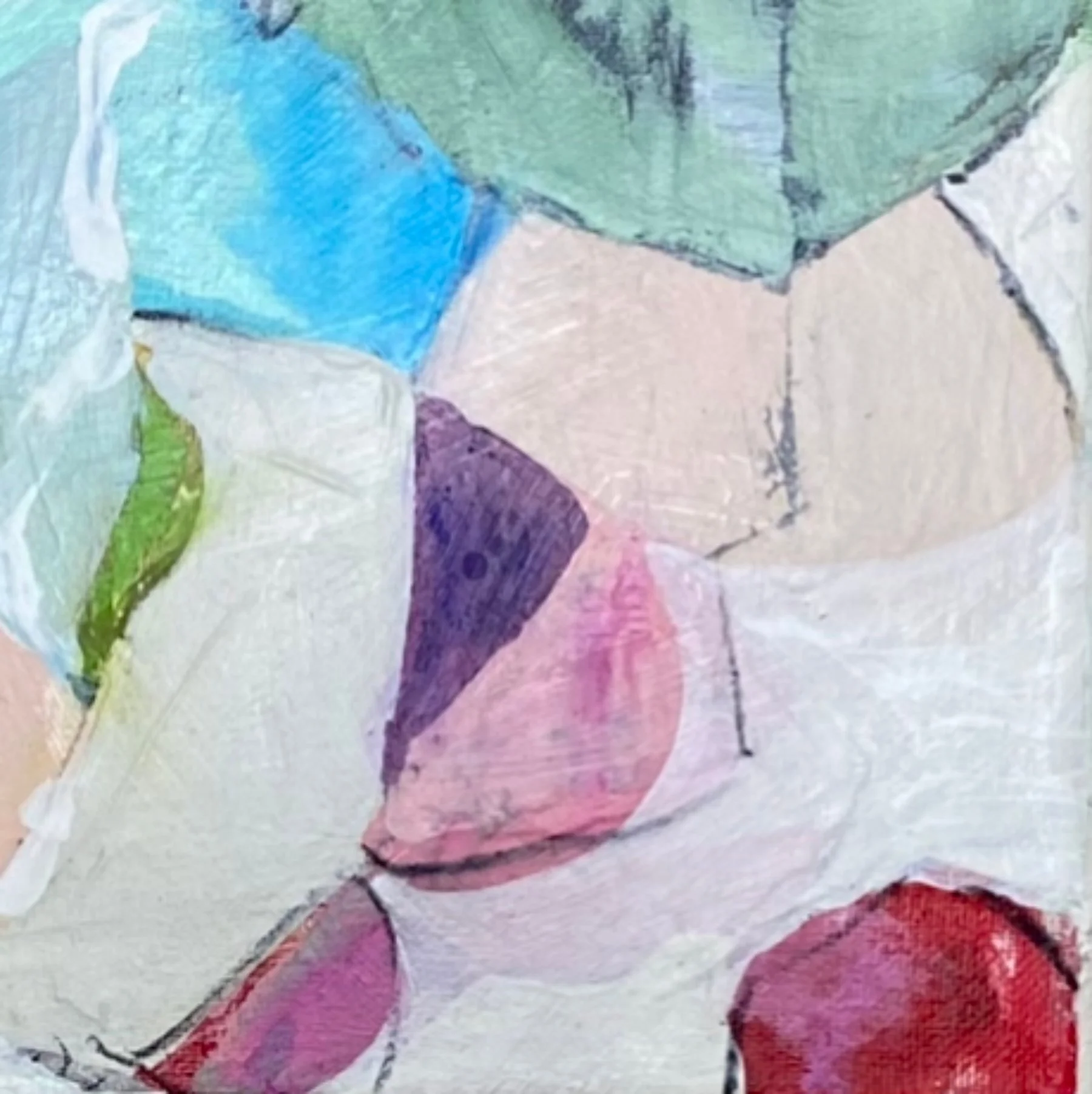 I am currently working in two separate and distinctive media, acrylic and encaustic. While both are paint, technically speaking, they behave very differently and my focus with each is different. With encaustic I primarily focus on collage; simple shapes, hard edges & lines, and color drive the process. My acrylic (mixed media) work often incorporates elements of collage as well, but in a much looser, more fluid and intuitive way. I find pleasure in each equally and I feel that for my art practice they are both essential as each seems to inform the other.