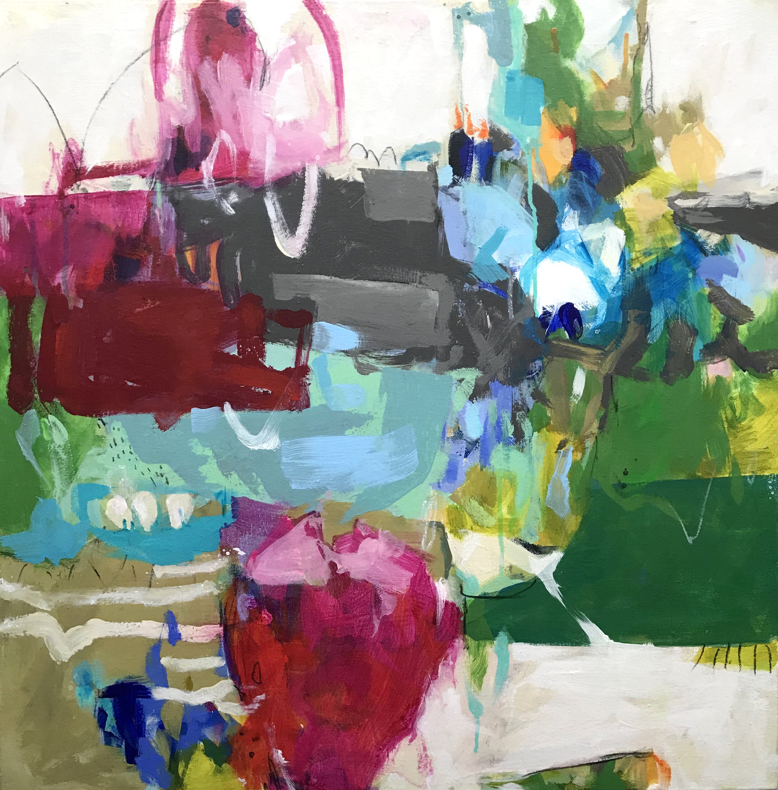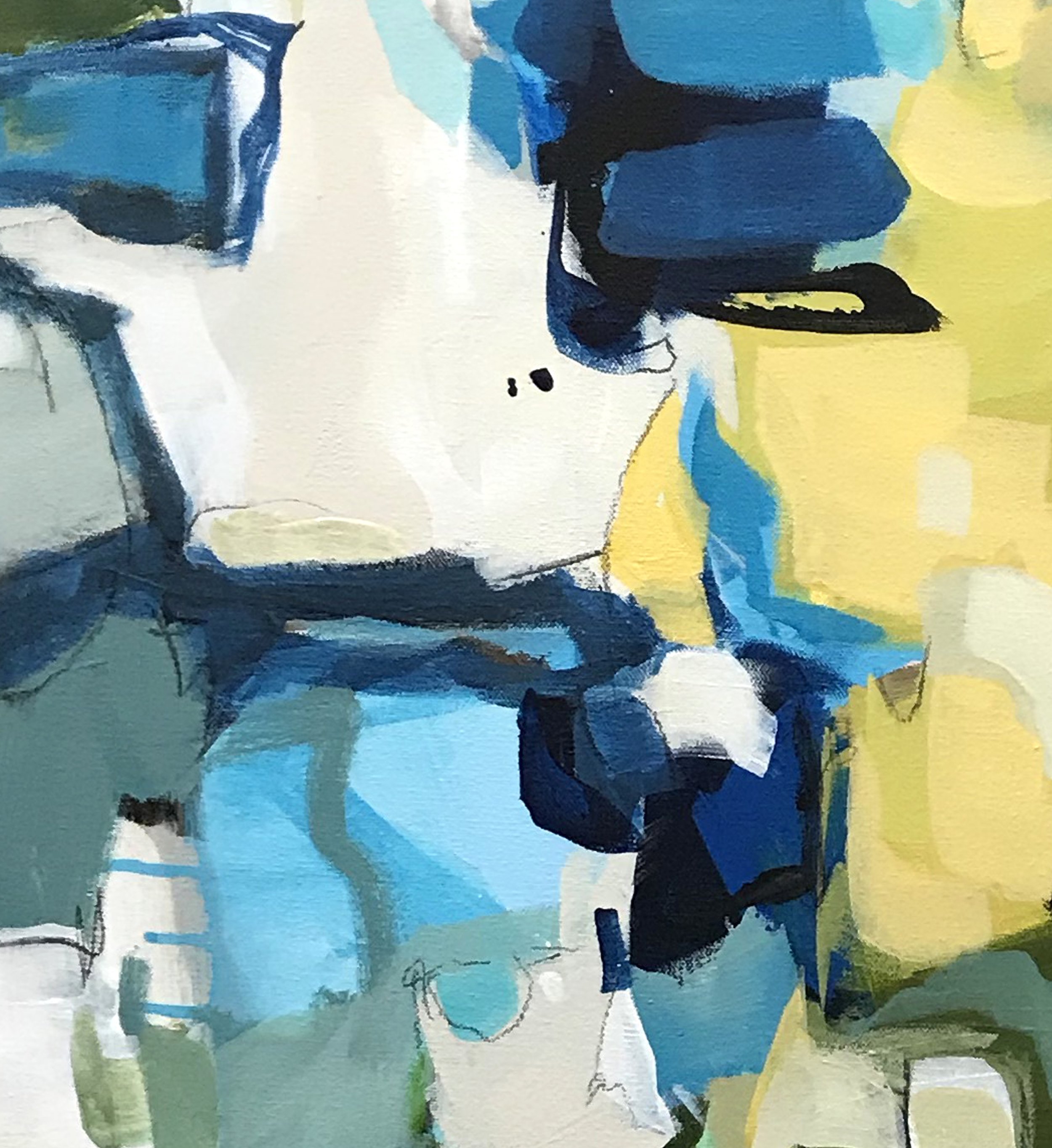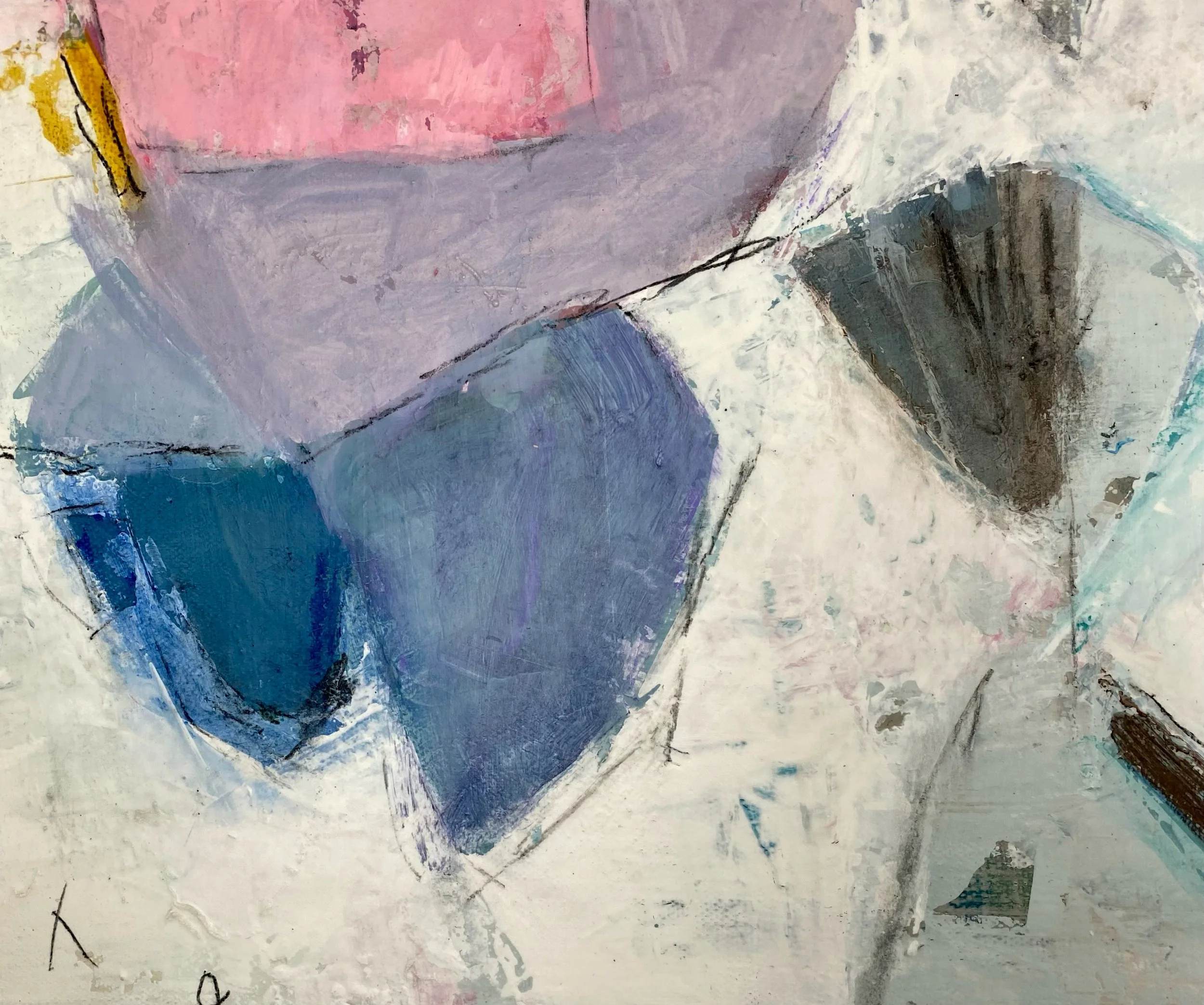 I am currently working in two separate and distinctive media, acrylic and encaustic. While both are paint, technically speaking, they behave very differently and my focus with each is different. With encaustic I primarily focus on collage; simple shapes, hard edges & lines, and color drive the process. My acrylic (mixed media) work often incorporates elements of collage as well, but in a much looser, more fluid and intuitive way. I find pleasure in each equally and I feel that for my art practice they are both essential as each seems to inform the other.