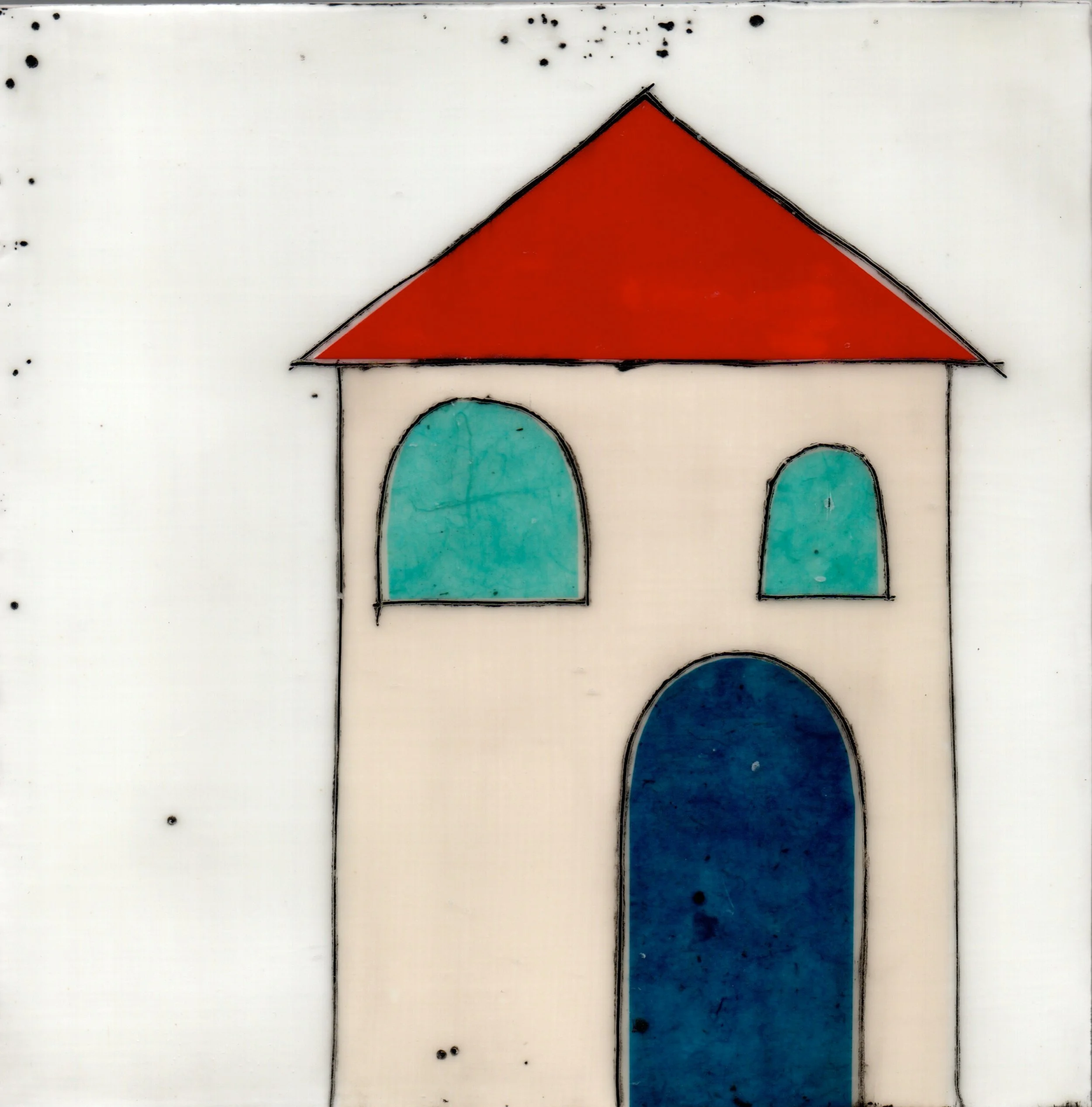 These are encaustic, ink, oil and paper on cradled wood panels and range in size from 4"x4" to 6"x12".